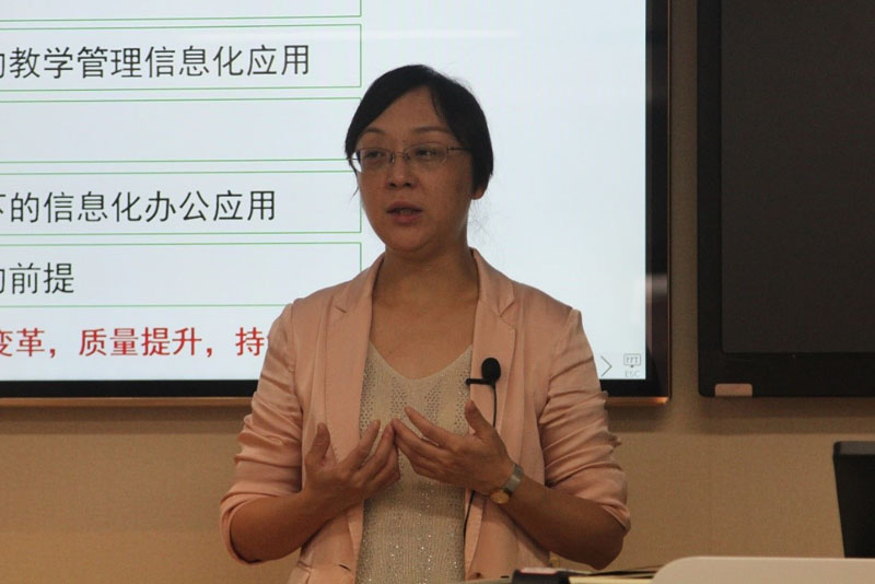 顏慶女士作了題為《智慧校園建設(shè)與應(yīng)用規(guī)劃設(shè)計(jì)——以信息化應(yīng)用賦能學(xué)??茖W(xué)管理》的報(bào)告,她從職業(yè)學(xué)校四化管理的基本原理、OKR工作法的基本原理與應(yīng)用、智慧校園建設(shè)與應(yīng)用頂層規(guī)劃、智慧校園成功應(yīng)用的關(guān)鍵點(diǎn)等方面作了詳細(xì)介紹,為興文職校信息化規(guī)劃提供了思路。