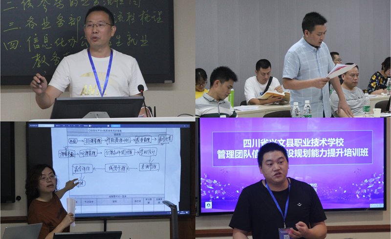 為提升學(xué)校信息化建設(shè)和應(yīng)用水平,7月11~14日,“四川省興文縣職業(yè)技術(shù)學(xué)校管理團(tuán)隊(duì)信息化建設(shè)規(guī)劃能力提升培訓(xùn)班”在成都成功舉辦,學(xué)校校級(jí)領(lǐng)導(dǎo)、各部門(mén)主管、專(zhuān)業(yè)帶頭人、業(yè)務(wù)骨干等39人參加了培訓(xùn)活動(dòng)。本次培訓(xùn)由四川省興文縣職業(yè)技術(shù)學(xué)校(以下簡(jiǎn)稱(chēng)“興文職?!保┲鬓k,依能職業(yè)教育研究所和成都依能職業(yè)技能培訓(xùn)中心聯(lián)合承辦。