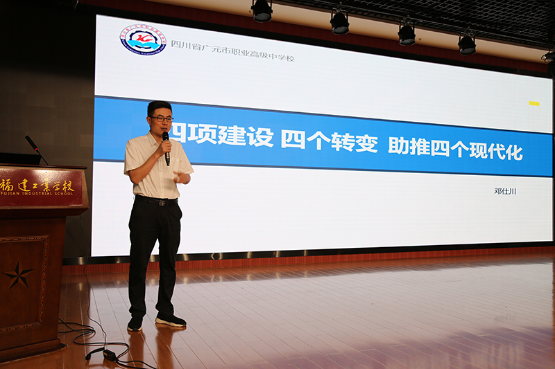福建省職業(yè)技術教育學會會長陳瑞晶、福建工業(yè)學校校長林俊標等領導出席會議。作為今年福建省職業(yè)技術教育學會系列專題活動之一,本次研討會邀請了中國教育裝備行業(yè)協(xié)會研究院施建國副院長、依能職業(yè)教育研究所王硯研究員、福建省上杭職業(yè)中專學校張先琳校長和廣元市職業(yè)高級中學校鄧仕川副校長作專題報告。福建省各中職學校領導、教務處負責人、信息中心負責人等100余名代表參加了會議。