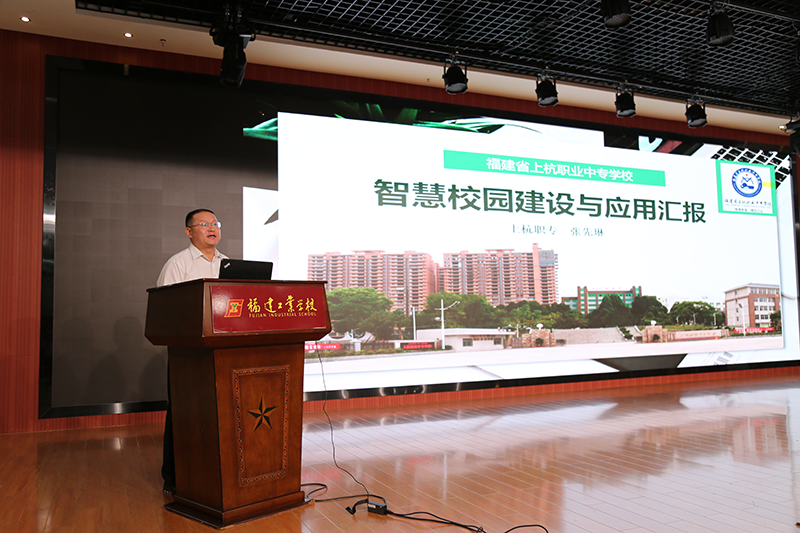 會議最后,福建省上杭職業(yè)中專學校校長張先琳作了學校智慧校園建設與應用經(jīng)驗的分享,介紹了學校智慧校園建設取得的成果,以及學校智慧校園應用的下一步計劃及推進措施。