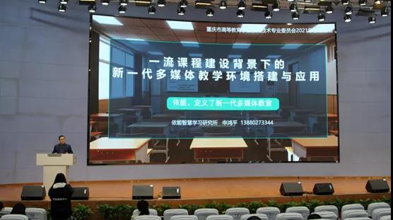 12月10日,重慶市2021年本科高校微課教學(xué)比賽頒獎(jiǎng)大會(huì)暨重慶市高等教育學(xué)會(huì)教育技術(shù)專業(yè)委員會(huì)2021年學(xué)術(shù)年會(huì)在重慶對(duì)外經(jīng)貿(mào)學(xué)院舉行。專家、學(xué)者等齊聚一堂,圍繞加強(qiáng)高校間學(xué)術(shù)交流、推動(dòng)新時(shí)期教育信息化轉(zhuǎn)段升級(jí)等問題進(jìn)行了交流研討。來自重慶市各高校、企業(yè)的代表共計(jì)150余人參加了本次會(huì)議,依能作為支持單位在大會(huì)作了技術(shù)報(bào)告。