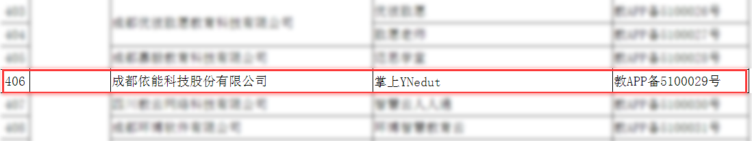 2020年1月2日,教育部公布了第二批教育App備案名單,476個教育App完成備案。名單顯示,依能科技“掌上YNedut”(已更名為“YN智慧校園”)通過備案,備案號為:教APP備5100029號。