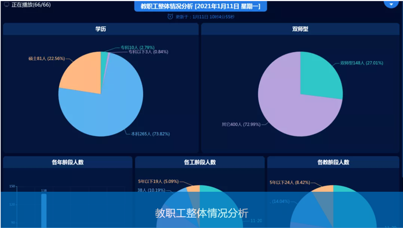 在學(xué)院日常管理工作中,各業(yè)務(wù)部門存在很多需要向各級(jí)匯報(bào)數(shù)據(jù)的情形,如向院領(lǐng)導(dǎo)匯報(bào)各專業(yè)招生情況、學(xué)生畢業(yè)情況等。若老師進(jìn)行人工統(tǒng)計(jì)將耗費(fèi)大量時(shí)間和精力,且難以保證數(shù)據(jù)的即時(shí)性、準(zhǔn)確性,若學(xué)院領(lǐng)導(dǎo)登錄智慧校園平臺(tái)自行查找,也會(huì)耗費(fèi)一定時(shí)間。晉中職業(yè)技術(shù)學(xué)院通過(guò)信息化管理看板,將來(lái)自學(xué)院智慧校園平臺(tái)各個(gè)應(yīng)用系統(tǒng)的業(yè)務(wù)數(shù)據(jù)(教務(wù)教學(xué)、招生迎新、學(xué)生安全、學(xué)生行為、實(shí)習(xí)和就業(yè)、師資隊(duì)伍建設(shè)等各個(gè)環(huán)節(jié)),通過(guò)電視看板或手機(jī)端將各級(jí)管理人員關(guān)注的重要信息自動(dòng)、實(shí)時(shí)、直觀呈現(xiàn),發(fā)現(xiàn)問(wèn)題及時(shí)解決。學(xué)校領(lǐng)導(dǎo)足不出門戶,便可輕松掌握學(xué)校運(yùn)營(yíng)狀況。