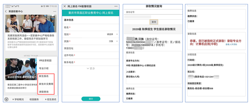 疫情影響下,許多傳統(tǒng)的招生工作走向困境,而榮昌區(qū)職業(yè)教育中心發(fā)揮互聯(lián)網(wǎng)手段,加強(qiáng)招生宣傳,通過(guò)依能智慧校園平臺(tái)實(shí)現(xiàn)招生迎新工作智能化管理,極大地提高工作質(zhì)量和效率,圓滿完成招生工作,開(kāi)辟招生新局面。