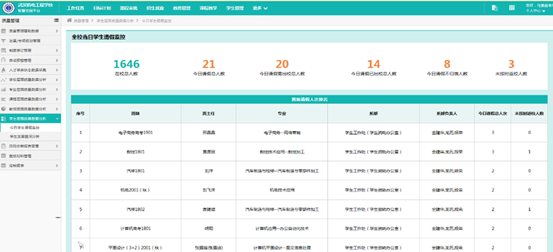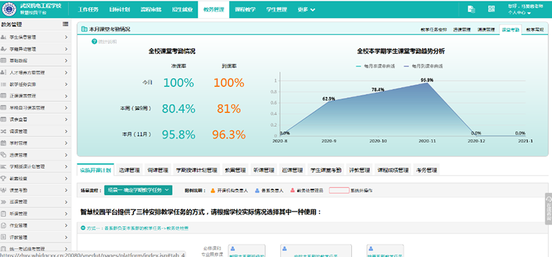 學(xué)校依托依能智慧校園平臺(tái),基本實(shí)現(xiàn)了行政辦公、招生就業(yè)、教務(wù)管理、課程教學(xué)等工作的系統(tǒng)化、規(guī)范化、精細(xì)化、信息化,建立常態(tài)化教學(xué)質(zhì)量檢測、分析和預(yù)警機(jī)制,形成“管理、教學(xué)、學(xué)習(xí)”三位一體、同步發(fā)展的信息化管理體系,給學(xué)校管理和教學(xué)帶來的改觀尤為顯著,在全省乃至全國形成示范和帶動(dòng)作用。
