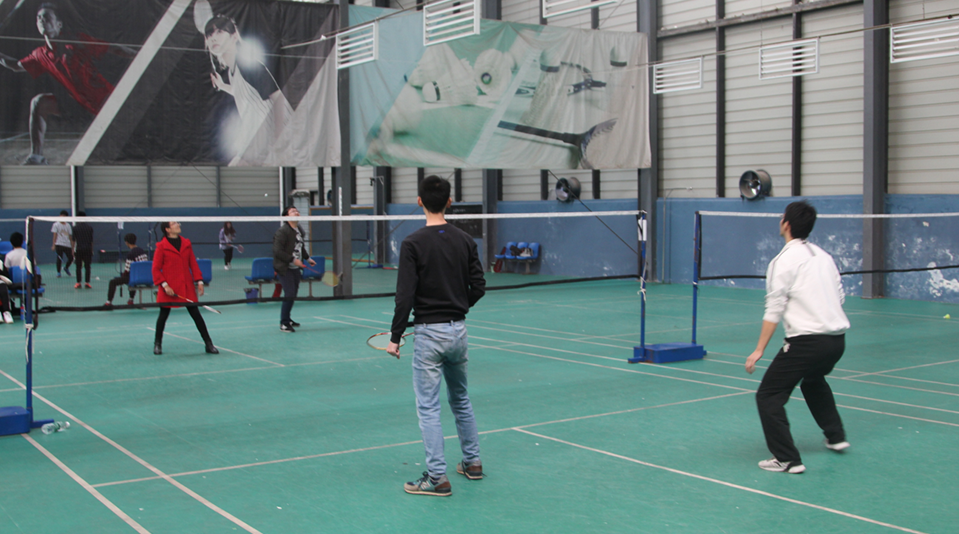 下午3點,大家到達西華大學(xué)羽毛球館,進行羽毛球雙打比賽。參加羽毛球比賽的總共16支隊伍,比賽采取抽簽方式選取對手。第一輪16進8,第二輪8進4,第三輪兩兩對決,贏的兩隊再比賽爭奪第一、第二名,輸?shù)膬申犜俦荣悹帄Z第三名。