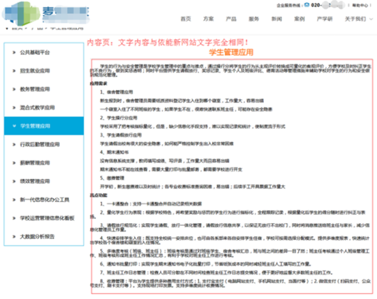 主要產(chǎn)品包括:整合集成的學(xué)校智慧校園平臺YNedut;智慧校園宣傳展示及營銷招生系統(tǒng);專業(yè)數(shù)字化教學(xué)資源庫合作開發(fā);智慧教室魔盒——微講師課堂教學(xué)系統(tǒng);職業(yè)院校質(zhì)量管理體系及診改咨詢服務(wù)等,幫助職業(yè)院校提升內(nèi)部管理水平,以整合集成的信息化平臺為過程改進(jìn)提供數(shù)據(jù)支撐,形成不斷自我優(yōu)化的質(zhì)量管理保障機(jī)制,保障教育教學(xué)質(zhì)量,推動(dòng)職業(yè)院??沙掷m(xù)發(fā)展。