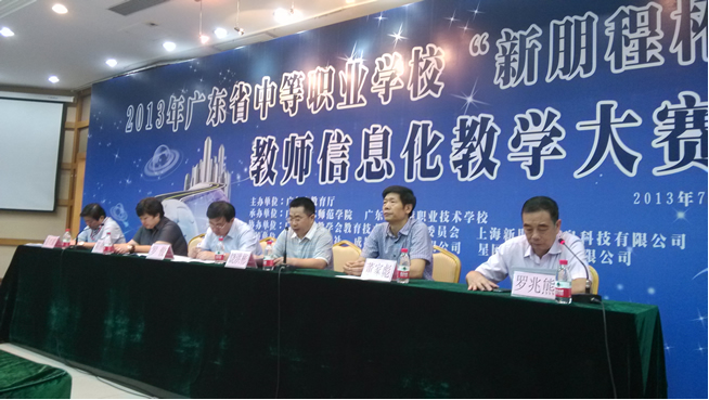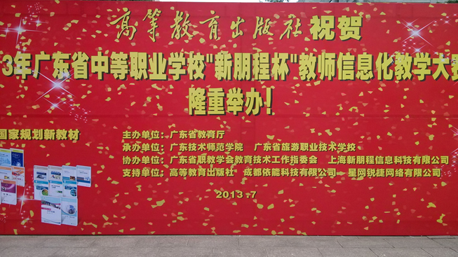 2013年7月6日至7月7日,由廣東省旅游職業(yè)技術學校和成都依能科技有限公司、高等教育出版社、星網銳捷承辦的“新朋程杯”全省中等職業(yè)學校教師信息化教學大賽隆重舉行,來自全省各市的50多支參賽隊共計100余名選手參加本次大賽,大賽分教學設計和多媒體軟件兩個項目。省教育廳高中職處饒洪彬調研員全程指導大賽組織工作,董家彪校長高度評價了參賽教師在本次大賽中提供的信息化教學典型范。