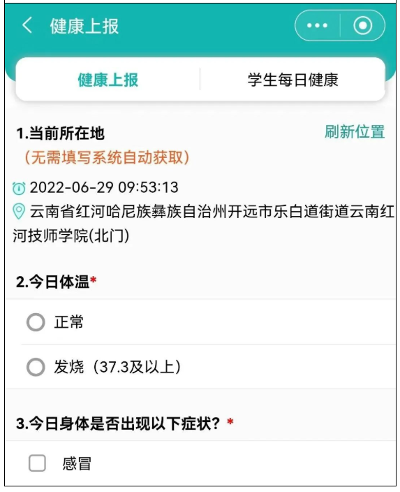“YN智慧校園”App進(jìn)行健康信息填報(bào)