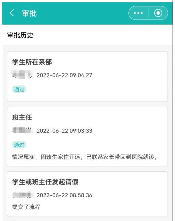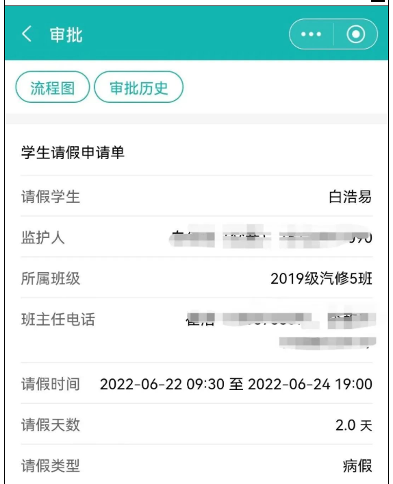 學(xué)生通過(guò)“YN智慧校園”App填寫請(qǐng)假申請(qǐng),如果因病請(qǐng)假提供校醫(yī)院的證明,班主任收到請(qǐng)假申請(qǐng)后,審批通過(guò)學(xué)生方可離校。