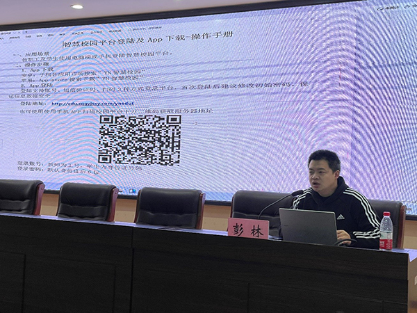 ▲ 彭主任在2022年春期班主任會上培訓(xùn)智慧校園使用