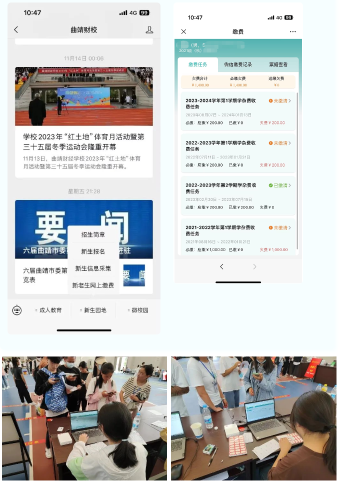 報(bào)到前在線提前完成學(xué)生信息采集、學(xué)費(fèi)繳納等流程,將迎新前的各項(xiàng)手續(xù)、服務(wù)提前辦、在線辦,比起傳統(tǒng)到校排隊(duì)報(bào)名、繳費(fèi),每名學(xué)生至少節(jié)約50%的辦理時(shí)間,每學(xué)年省去了1名財(cái)務(wù)老師連續(xù)4天手工核對(duì)新生繳費(fèi)信息的時(shí)間。同時(shí)學(xué)校領(lǐng)導(dǎo)也可以通過智慧校園平臺(tái)及時(shí)掌握學(xué)生的報(bào)名情況和繳費(fèi)情況,為后續(xù)的教學(xué)和管理提供更好的保障。