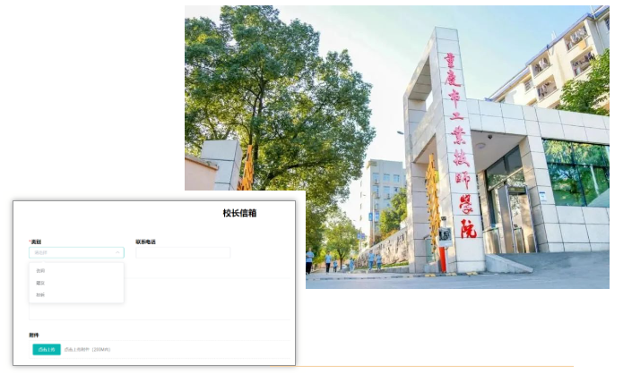 為進(jìn)一步拓寬校領(lǐng)導(dǎo)與廣大師生員工的溝通渠道,重慶市工業(yè)技師學(xué)院通過(guò)BPE設(shè)立電子校長(zhǎng)信箱,針對(duì)全校師生開(kāi)放。師生可通過(guò)線上便捷地表達(dá)自己的意見(jiàn)和建議,聲音直接傳達(dá)給校長(zhǎng),便于學(xué)校積極采取行動(dòng),改善教育環(huán)境,提升教育質(zhì)量。校長(zhǎng)信箱以快捷、綠色的電子方式,大大拓展了傳統(tǒng)信箱的主要功能,省去了發(fā)信人的體力精力,最大限度地提高工作效率。