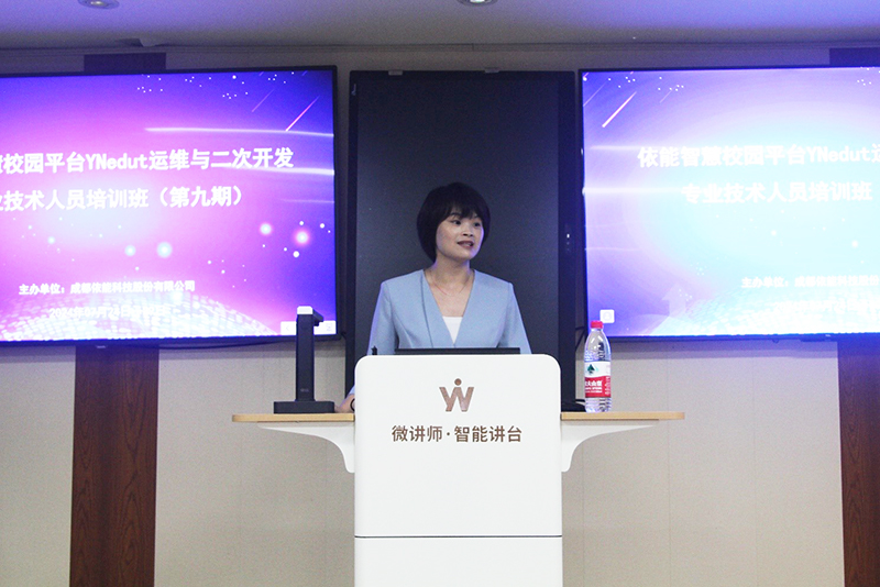 培訓(xùn)首日,成都依能科技股份有限公司總經(jīng)理謝紹群女士發(fā)表開班致辭,她首先對(duì)遠(yuǎn)道而來的老師表示熱烈歡迎,并表示,依能致力于構(gòu)建一個(gè)思想交流和經(jīng)驗(yàn)分享的平臺(tái),期待每位參與者都能從中汲取養(yǎng)分,成為推動(dòng)智慧校園建設(shè)與應(yīng)用的中堅(jiān)力量。她強(qiáng)調(diào),依能與所有信息工作者肩負(fù)著共同的歷史使命,即幫助學(xué)校跨越信息化的鴻溝,將信息技術(shù)融入到學(xué)校管理和教學(xué)的每個(gè)環(huán)節(jié),提升學(xué)校教學(xué)質(zhì)量與管理水平。依能誠邀各位攜手并進(jìn),共同書寫學(xué)校數(shù)字化轉(zhuǎn)型新篇章。