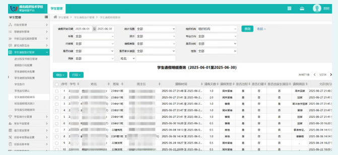 學(xué)生管理全程化:從入學(xué)報(bào)到、在校學(xué)習(xí)、生活服務(wù)到畢業(yè)離校,學(xué)生的考勤、請(qǐng)假、獎(jiǎng)懲、資助申請(qǐng)、心理健康等數(shù)據(jù)全程互聯(lián)互通。班主任與管理人員能實(shí)時(shí)、全面掌握學(xué)生動(dòng)態(tài),為學(xué)生提供個(gè)性化關(guān)懷與精準(zhǔn)支持。